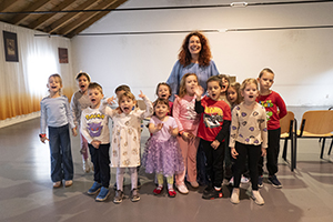 Središnji dio radionice činile su zabavne dramske igre i vježbe – gesta, mimika, žive slike i pantomima uz glazbu – koje su poticale izražavanje, maštu i grupnu dinamiku. Na kraju je uslijedio kratki razgovor o autorici, procesu nastanka slikovnice i važnosti čitanja, čime je radionica zaokružena kao poticajno i edukativno iskustvo za najmlađe sudionike.