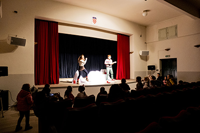 Atmosfera u Kino sali bila je čarobna – svaka scena donosila je novo iznenađenje, a djeca su aktivno sudjelovala u stvaranju priče. Predstava je pokazala kako kazalište može biti prostor igre, učenja i zajedništva, a snježna tema dodatno je unijela radost i blagdanski duh u našu zajednicu.